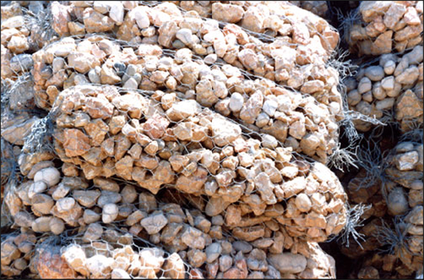 Sack Gabions are double twist hexagonal wire mesh units consisting of a single mesh panel laced to form a cylindrical unit.